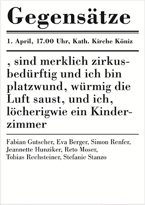Gegensätze, Kath. Kirche Köniz, w/ Fabian Gutscher, Eva Berger, Simon Renfer, Jeannette Hunziker, Tobias Rechsteiner, Stefanie Stanzo